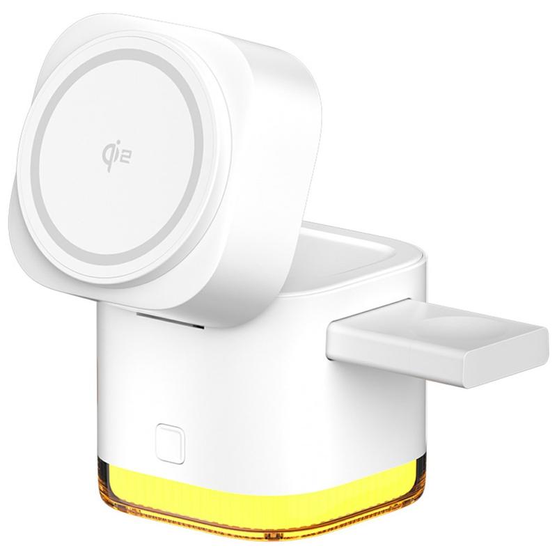 C53 Qi2 5-i-1 foldbar MagSafe trådløs oplader / 15W hurtig opladningsstation med udtrækkeligt USB-C-kabel og LED-natlys - iOS- og Android-understøttelse