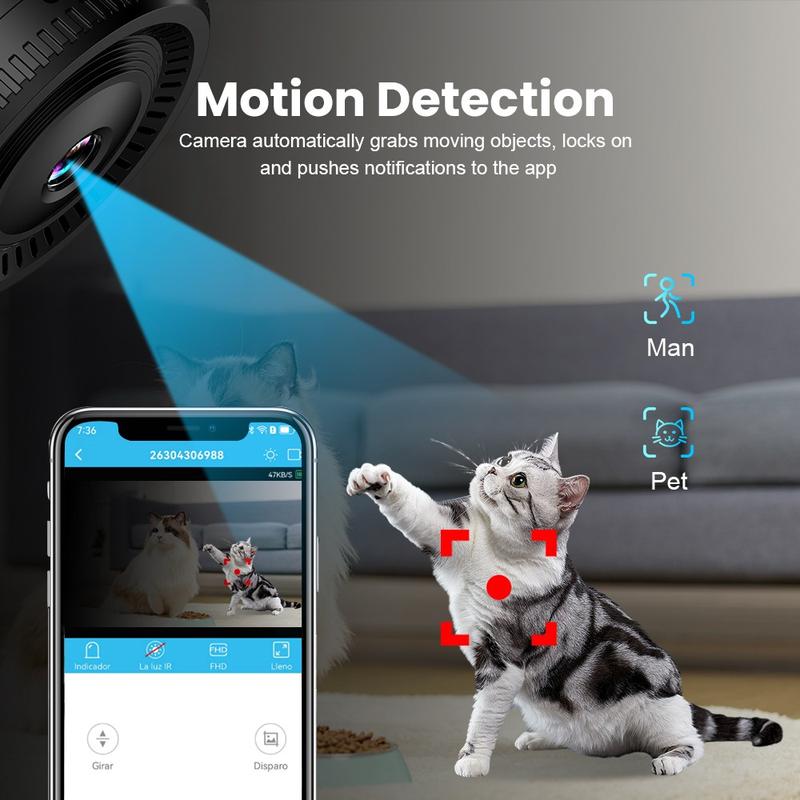 C8 Mini WiFi-sikkerhedskamera med 64GB hukommelseskort - 140 graders vidvinkel, bevægelsesregistrering, mikrofon, USB-C-opladning