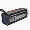 LR-7A 4500mAh Camping Hand Crank Solar Radio trådløs højttaler er et alsidigt og vigtigt værktøj til udendørs eventyr og nødsituationer. Med radiomodtagelse og trådløs streaming-afspilning giver denne håndsving-radio dig mulighed for at lytte til nyheder, musik og andre radioprogrammer overalt, og du kan også tilslutte din telefon for at afspille musik via Bluetooth. Den indbyggede 3W højtaler i fuld rækkevidde giver lyd i høj kvalitet. Derudover er den udstyret med en højtydende lommelygte og campinglys samt en nød-SOS-alarm, hvilket gør den til et must-have til camping-, rygsæk- eller overlevelsessituationer. Radioen kan forsynes med strøm på tre måder: via et type-c-kabel, en håndsving-generator eller et solpanel, og det indbyggede 4500mAh genopladelige batteri giver langvarig brug. Den bærbare størrelse og stærke snor gør det nemt at bære og hænge på din rygsæk.