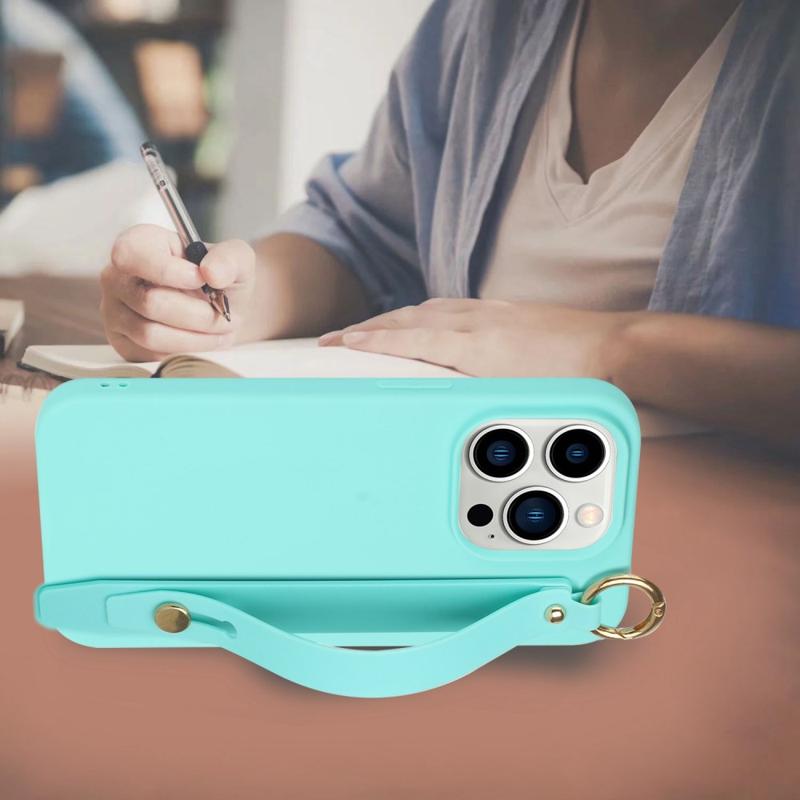 Til iPhone 14 Pro Max Candy Color Phone TPU-cover Anti-drop Anti-ridse etui med håndstrop Kickstand