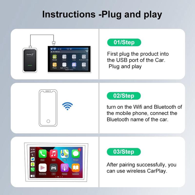 - Plug and Play-design: Opgrader din eksisterende kablede CarPlay-funktion til trådløs uden adskillelse eller kompleks opsætning.