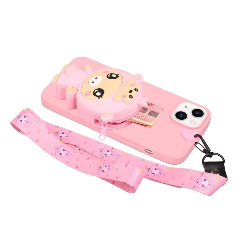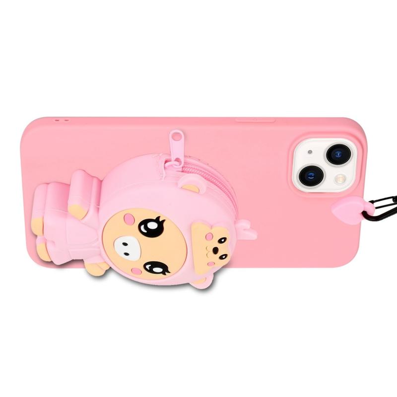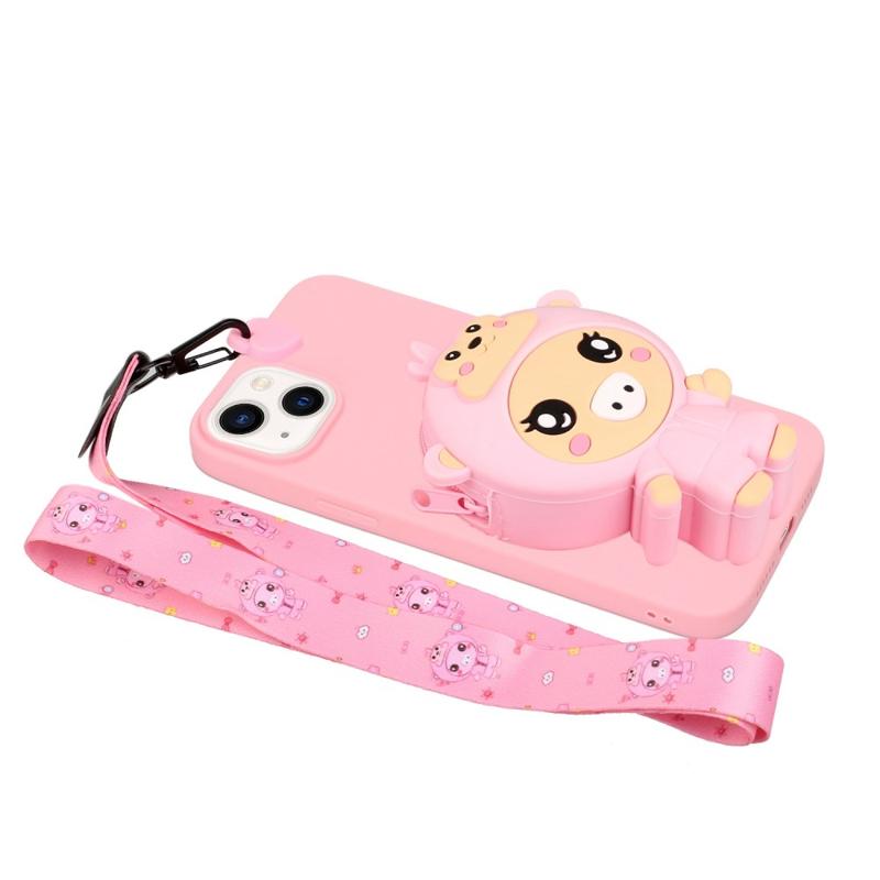 Cartoon Design iPhone 14 Plus TPU Cover med Lynlåslomme - Svin