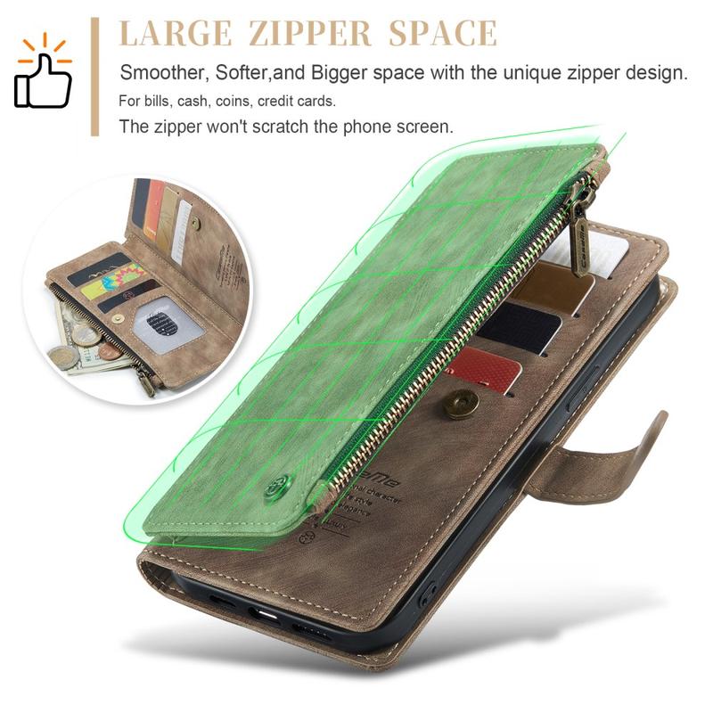 En Caseme C30 multifunktionel pung til iPhone 16 Pro Max giver en enestående all-around beskyttelse, og et eksklusivt, raffineret design. Dette elegant cover er lavet af førsteklasses polyurethan, forstærket af et stødabsorberende TPU indercover, der slutter sig perfekt omkring din iPhone 16 Pro Max. Samtidig er Caseme C30 pungen forbedret med adskillige kortholdere, et stort rum til penge indeni, og en lynlåslomme udenpå, som alle er beskyttet af en sikker magnetisk lukning.
