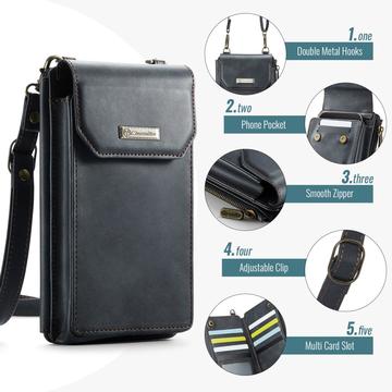 Caseme Me40 er kompatibel med smartphones fra 4 til 7,5 tommer og passer perfekt til næsten alle telefoner. Og med en justerbar crossbody-rem og en håndledsrem har du alsidige bæremuligheder, der passer til dine behov.