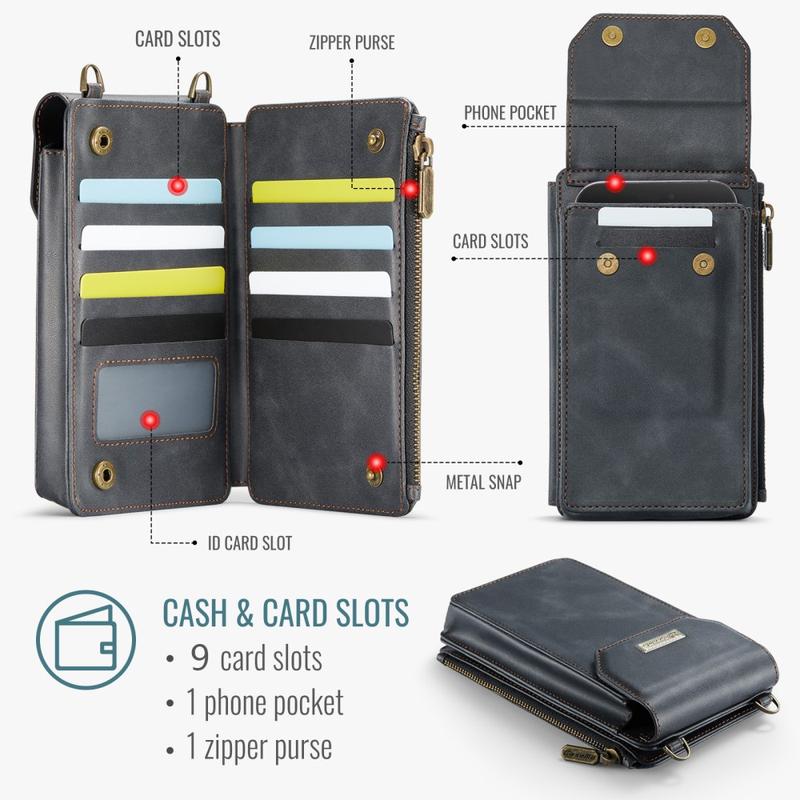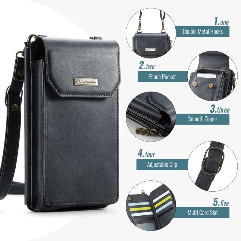 Caseme Me40 er kompatibel med smartphones fra 4 til 7,5 tommer og passer perfekt til næsten alle telefoner. Og med en justerbar crossbody-rem og en håndledsrem har du alsidige bæremuligheder, der passer til dine behov.
