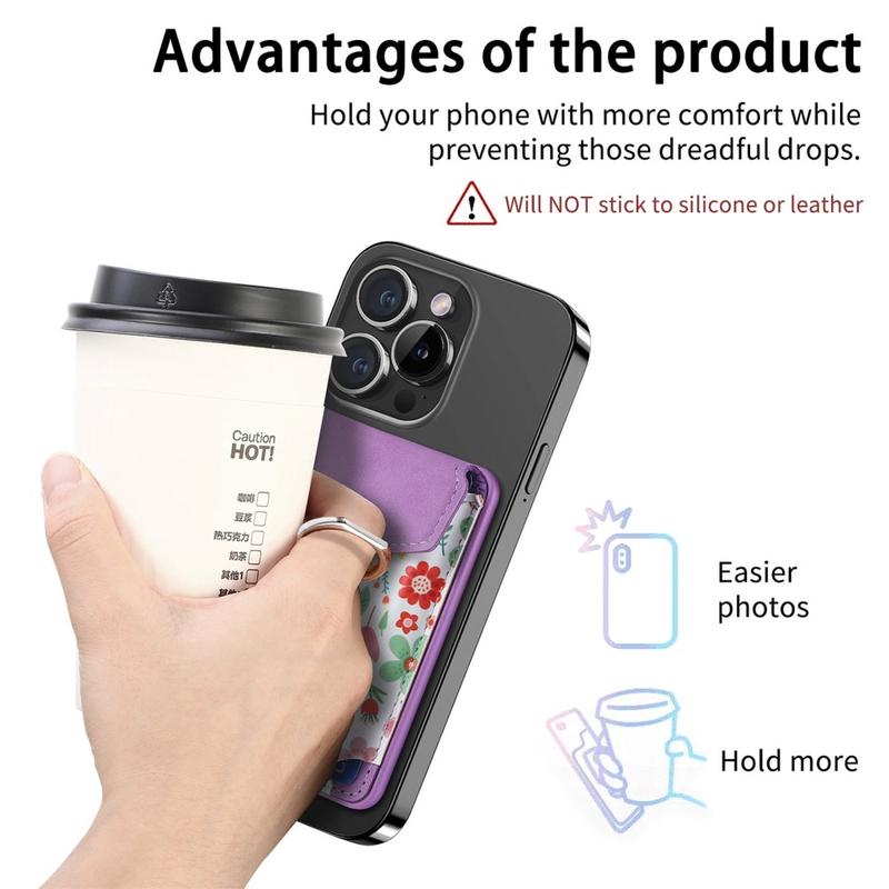 Denne kortholder er ideel til brugere, der ønsker praktiske løsninger uden at gå på kompromis med stilen. Den holder dine kort sikre, forbedrer håndteringen af telefonen med ringholderen og giver håndfrihed med kickstand-funktionen. Den stærke magnetiske fastgørelse sikrer tryghed i daglig brug, selv når du er på farten.