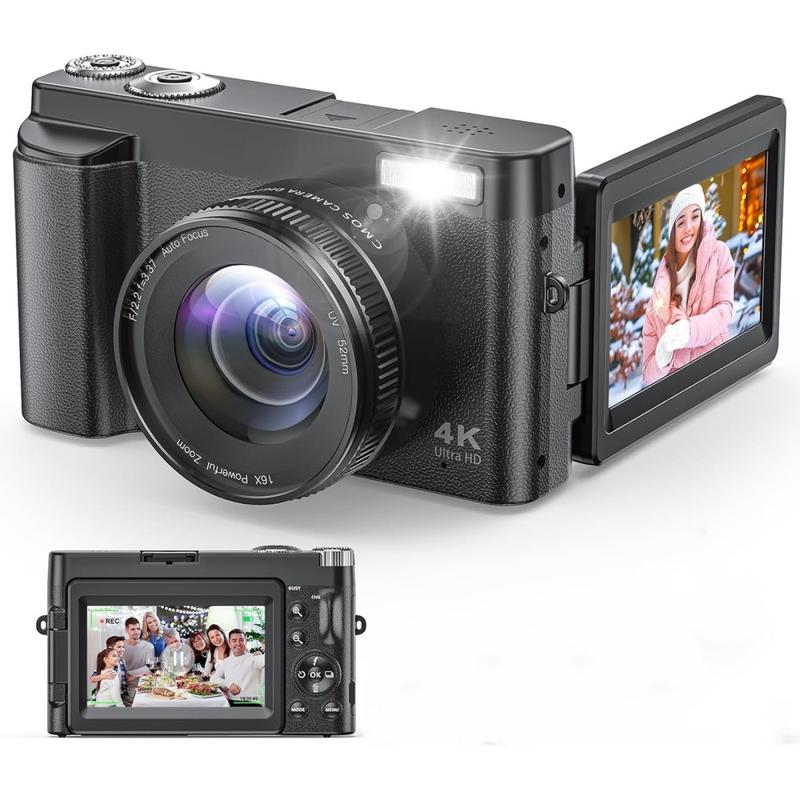 CD01 4K digitalkamera med 3,0-tommers flipskærm - 16X zoom foto- og vloggingkamera med 64GB hukommelseskort