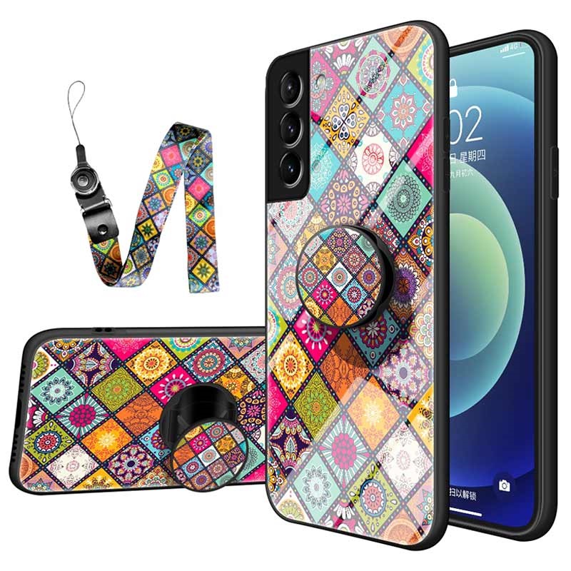 Checkered Pattern Samsung Galaxy S22 5G Hybrid Cover - Farverig Mandala