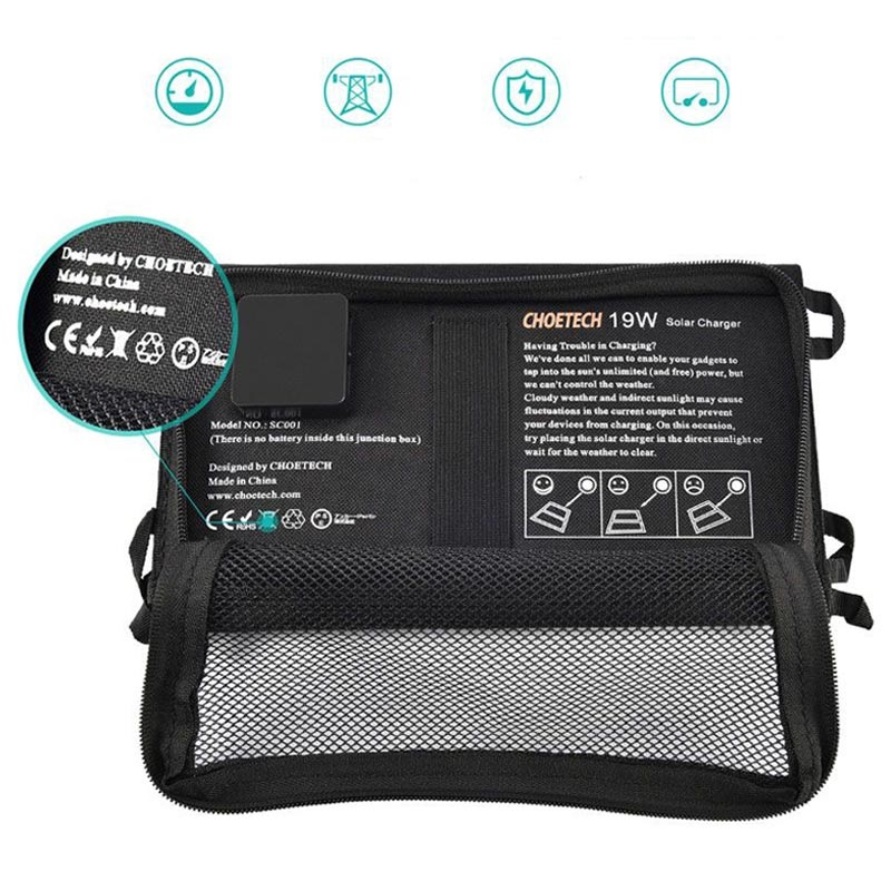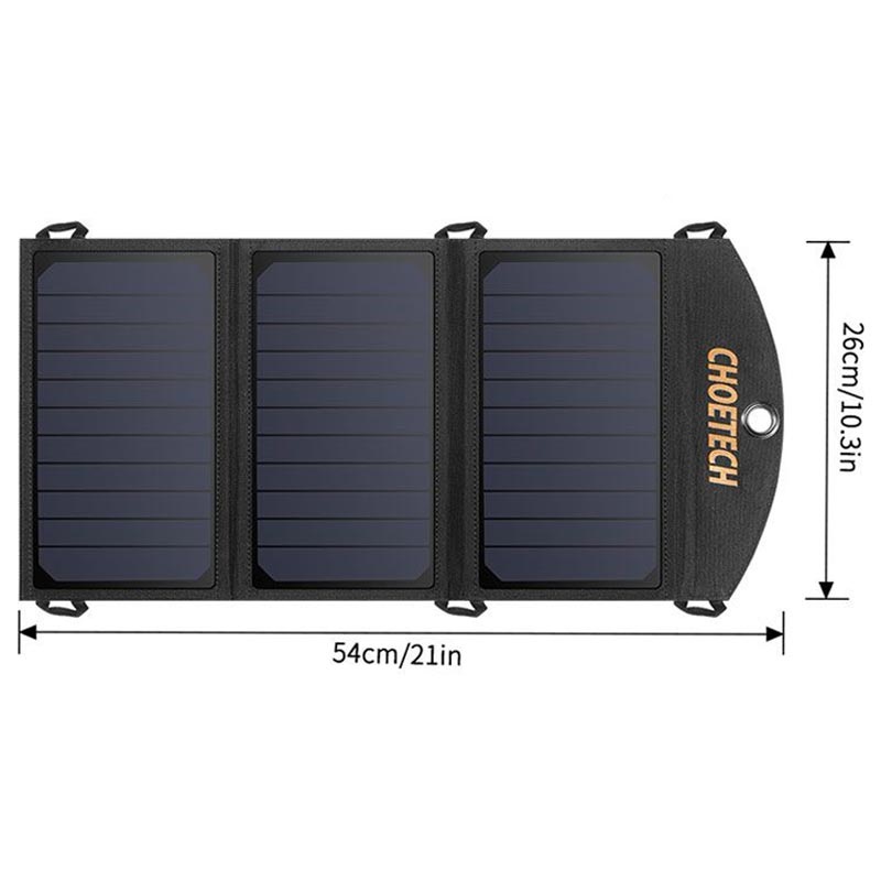 Choetech Sammenfoldelig Solcelleoplader med 2 Porte - 19W, 2xUSB-A 2.4A