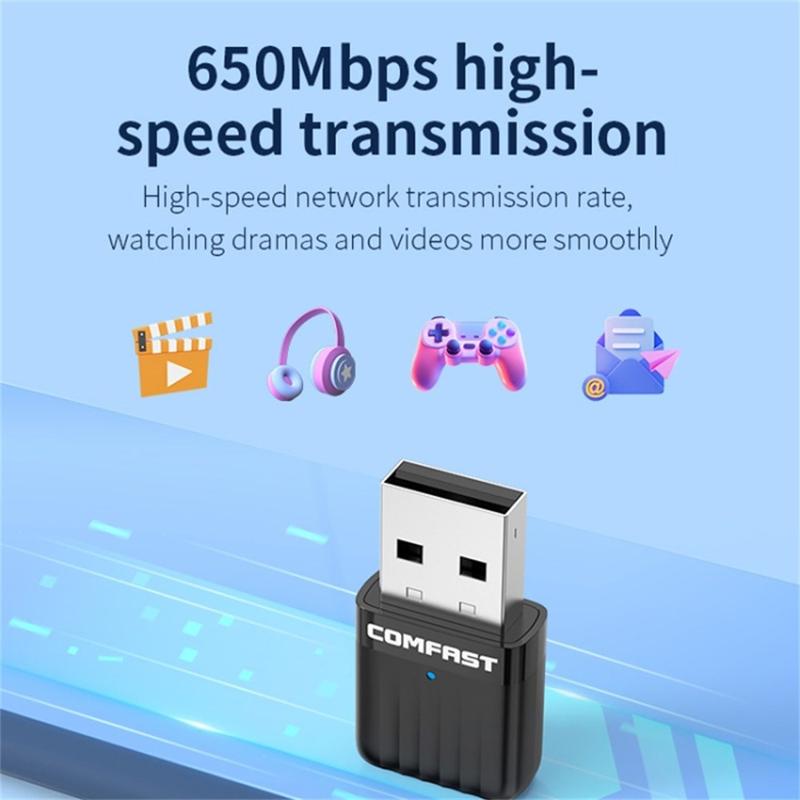 Nyd hurtigere og mere stabile internetforbindelser med COMFAST CF-811ACV3 dual-band WiFi-adapter. Den er kompakt, kraftfuld og plug-and-play-klar og leverer op til 650Mbps trådløs hastighed på tværs af 2,4 GHz- og 5,8 GHz-bånd - ideelt til streaming, spil og daglig browsing på din stationære eller bærbare computer.