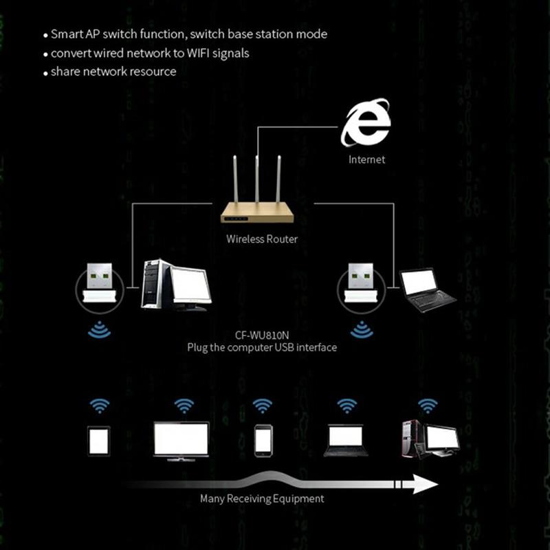 Nyd stabil og effektiv trådløs forbindelse overalt med COMFAST CF-WU810N dual-band USB WiFi-adapter. Den er kompakt, let og nem at installere og giver en pålidelig trådløs opgradering til både stationære pc'er og bærbare computere og understøtter flere operativsystemer og dual-band-frekvenser for optimal ydeevne.