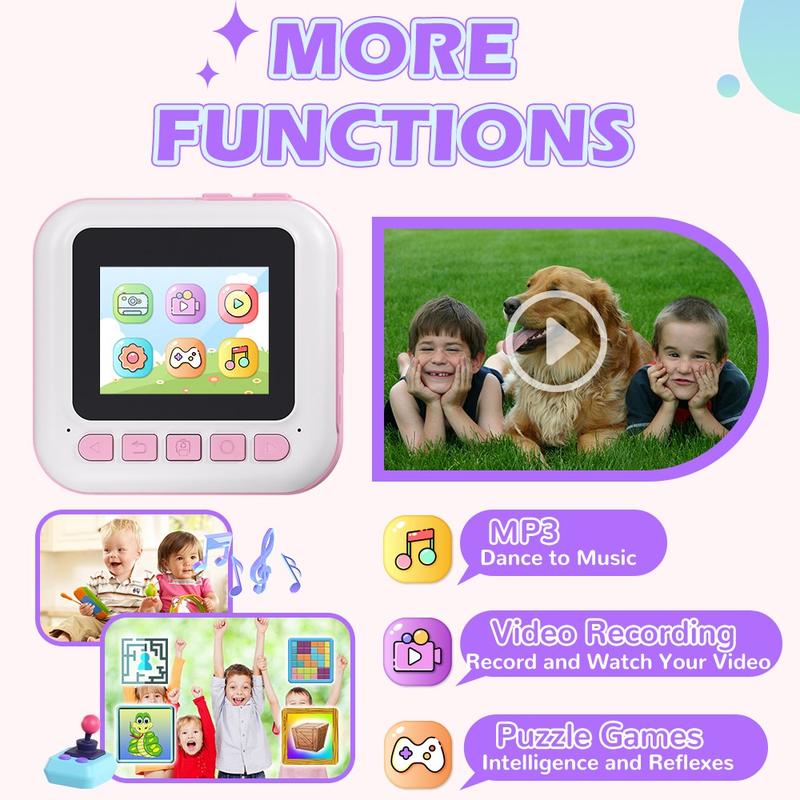 Introducer dit barn til fotografiets verden med CP02 Kids HD Digital Camera, der har en 2,4" IPS-skærm og indbygget termisk fotoprinter. Kameraet er udstyret med et 32 GB TF-kort og en kortlæser, så børnene kan tage billeder, optage videoer og printe deres kreationer med det samme. Batteriet på 1500 mAh sikrer lang brugstid, mens den holdbare ABS+silikone-konstruktion gør det sikkert og modstandsdygtigt over for fald. Med sjove funktioner som DIY-graffiti, MP3-musikafspilning og puslespil er det den perfekte gadget til kreativ leg.
