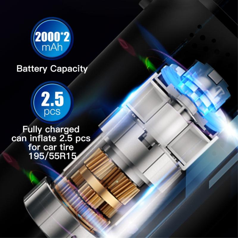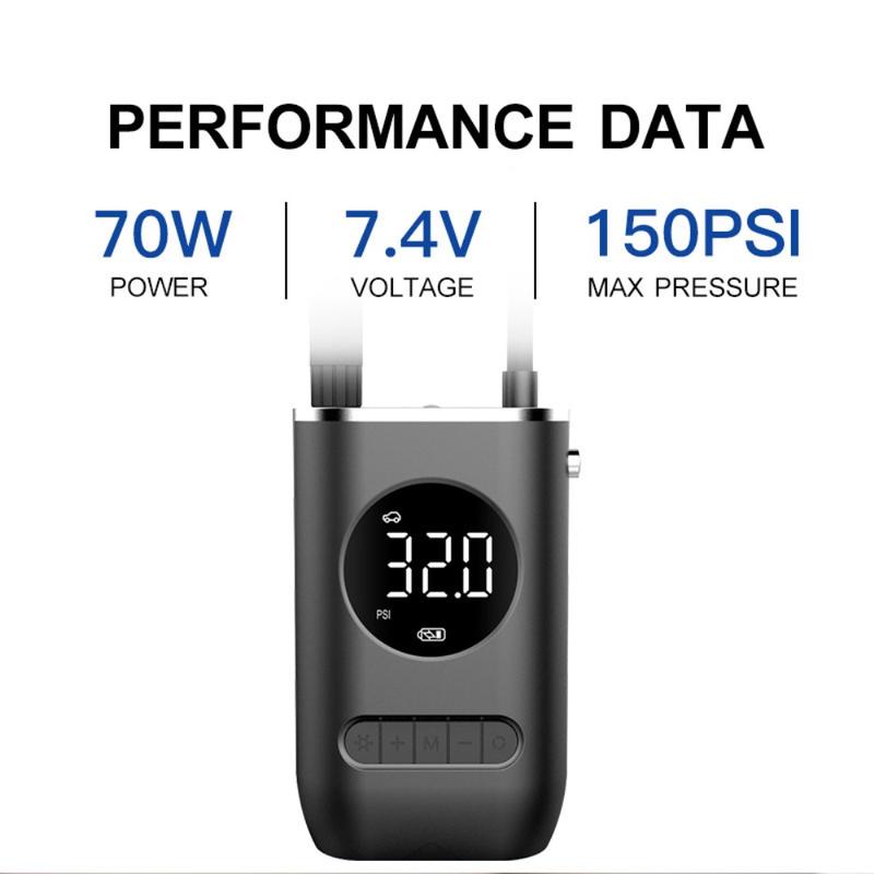 CQB-3668 Bærbar, genopladelig dækpumpe med digitalt display og LED-lys - håndholdt luftpumpe