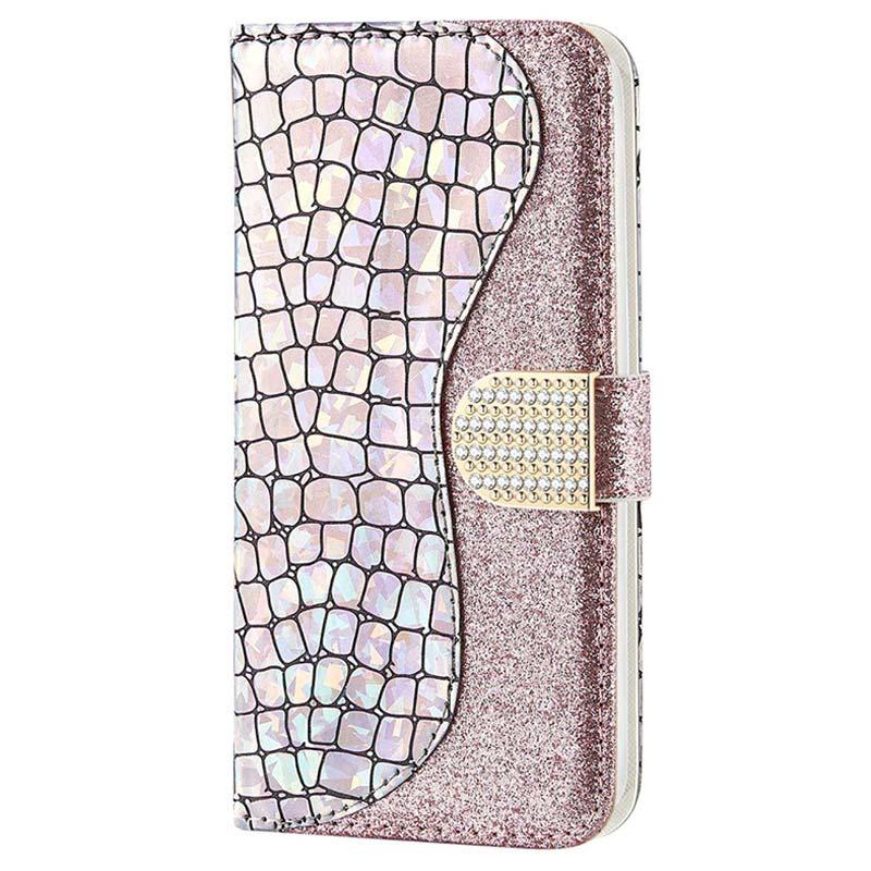 Croco Bling Series iPhone 14 Etui med Pung - Rødguld