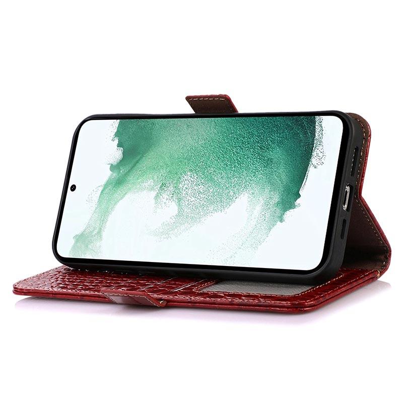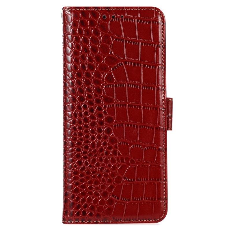 Style udseendet på din Samsung Galaxy A14 med dette ekstraordinære wallet-læderetui med krokodilleskindsmønster. Udstyret med flere kortlommer, et rum til kontanter og RFID-blokerende teknologi vil den effektivt erstatte din pung. Den magnetiske lås sikrer etuiet, og det smarte design gør det muligt at bruge som kickstand.
