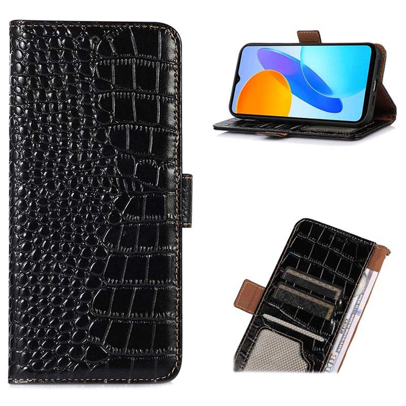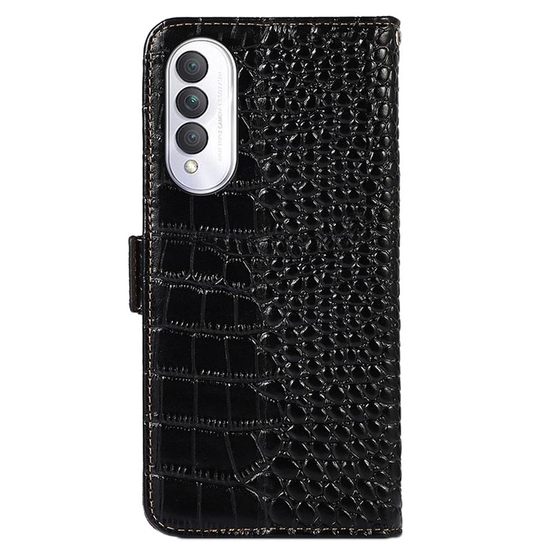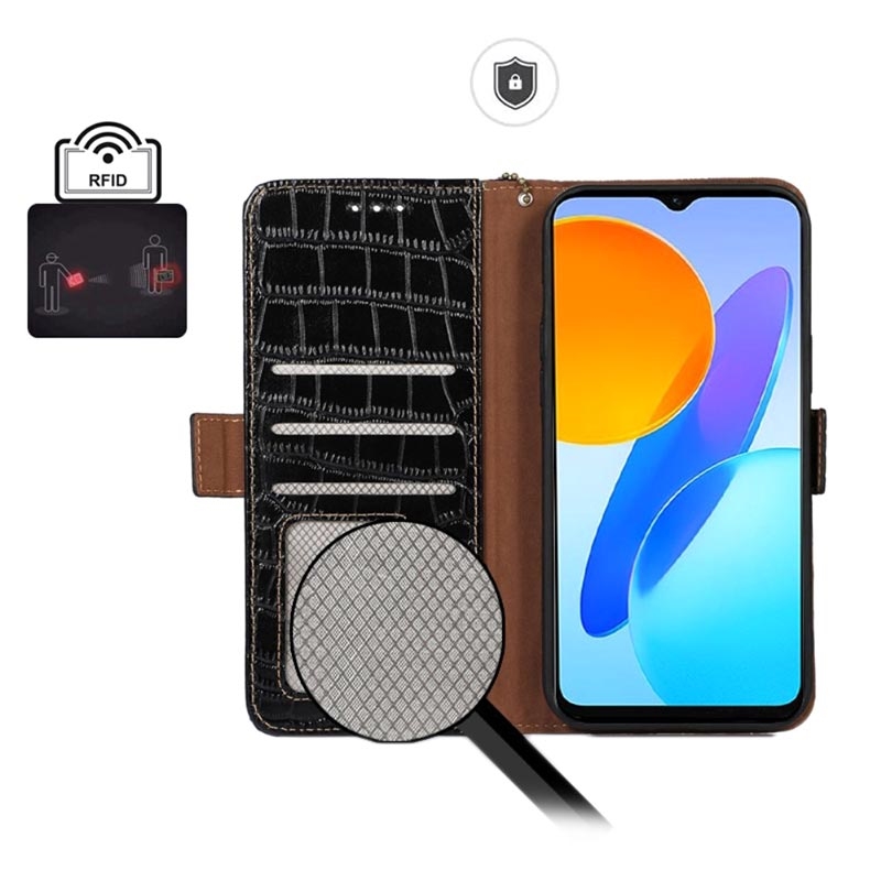Crocodile Series Honor X20 SE Læderpung med RFID - Sort