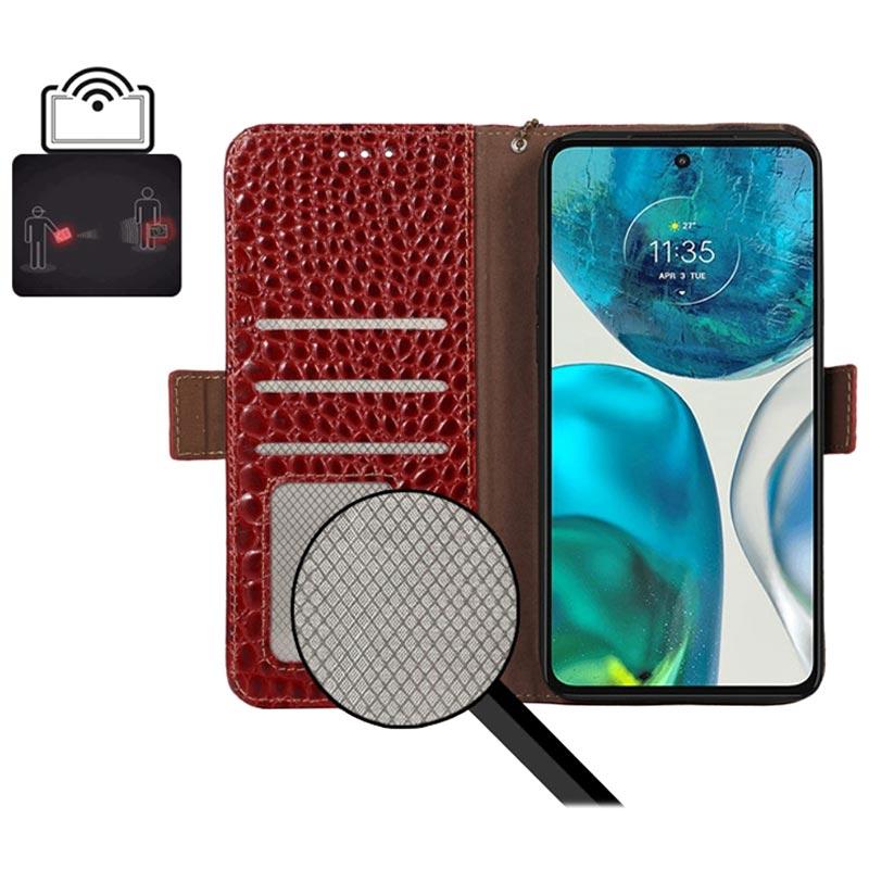 Crocodile Series Læderpung med RFID til Motorola Moto E22, Moto E22i