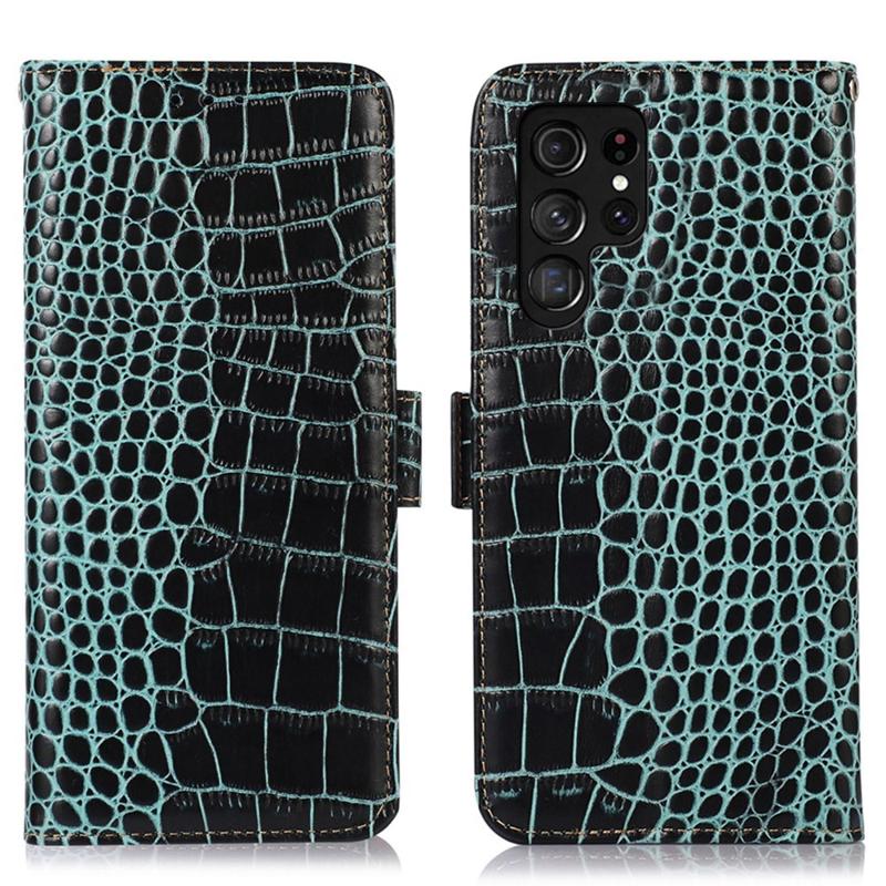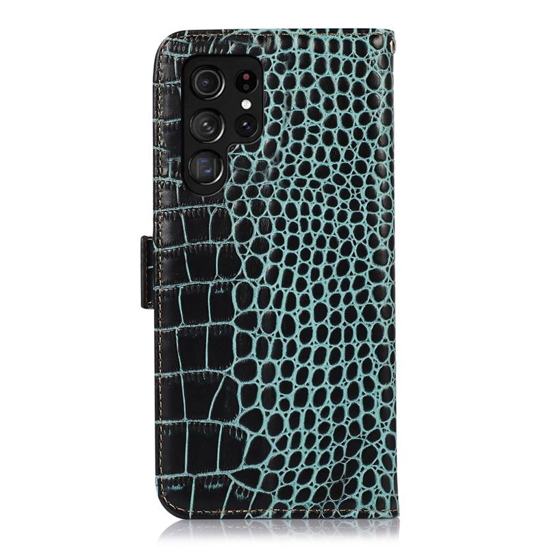 - Crocodile series pungcover af læder til Samsung Galaxy S23 Ultra 5G