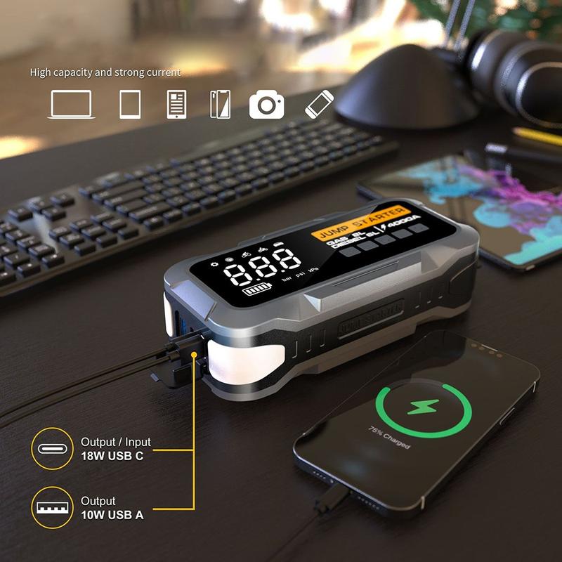CY97-startboosteren med luftkompressor er et alsidigt nødværktøj, der er udviklet til at hjælpe dig med at håndtere flade batterier, lavt dæktryk og uheld på vejen med ét kompakt apparat. Med sin kombination af en bærbar startbooster, en dækpumpe på 150 PSI, en powerbank og et LED-nødlys er den en praktisk alt-i-én-løsning, som du bør have i bilen til daglig kørsel, rejser og uventede nedbrud.