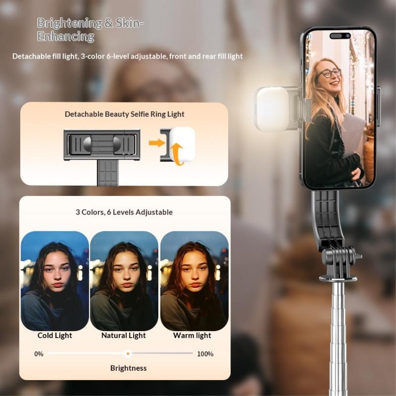 Det aftagelige beauty fill light tilbyder 3 farvetilstande (varm, kølig og naturlig) med 6 justerbare lysstyrkeniveauer. Det understøtter både for- og bagbelysning, så du kan opnå flatterende belysning i forskellige miljøer og under forskellige lysforhold.