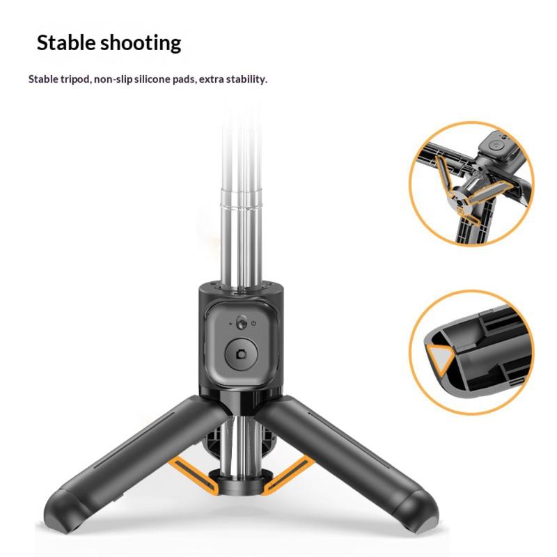 Selfiestangen er udstyret med Bluetooth 5.2 og giver stabil trådløs kontrol med en rækkevidde på op til 10 m. Tag billeder eller start optagelser på afstand uden at røre din telefon.
