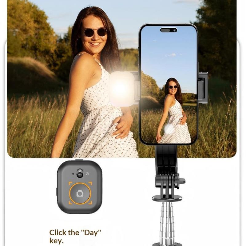 Telefonholderen understøtter 360° rotation, hvilket giver mulighed for vandret, lodret og overhead-optagelse. Det gør det nemt at skifte mellem formater til sociale medier, gruppebilleder og kreative videovinkler.