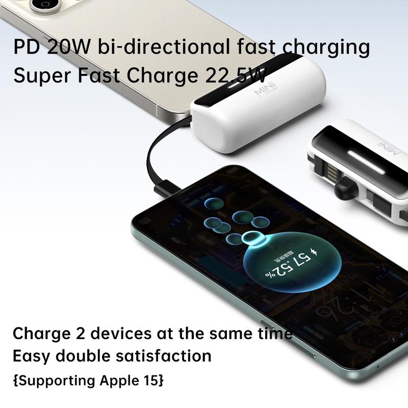 Cyke X3 Mini Lightning Power Bank med USB-C, USB-A-kabler - 5000mAh
