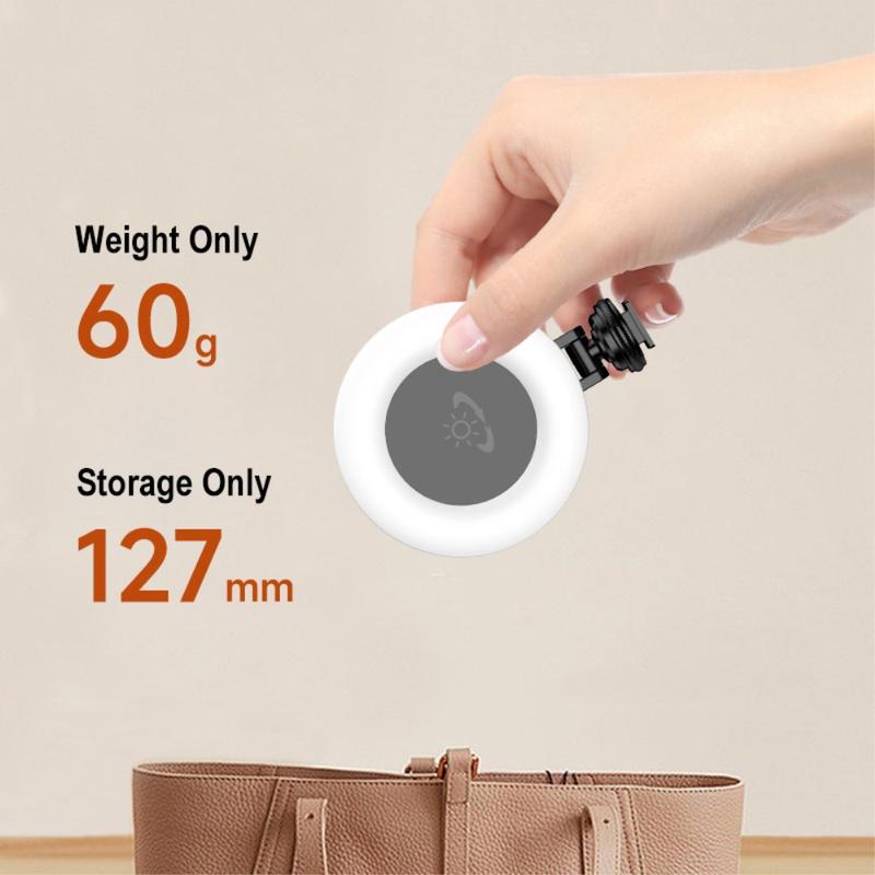 Denne kompakte og lette ringlys passer ned i lommen og er praktisk, når du er på farten for at skabe skønhed og indhold.