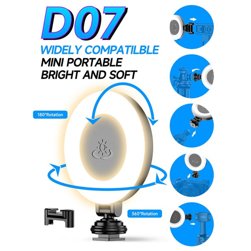 D07 3 farver 9 niveauer dæmpbart bærbart lys til selfie-fotografering og live-streaming