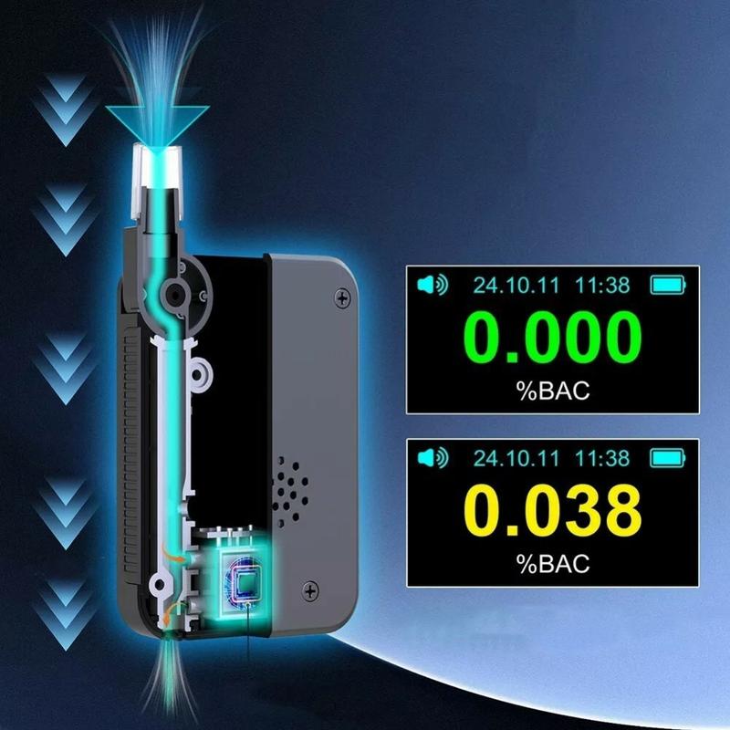 Kompakt, sammenklappelig alkoholtester, der giver hurtige, præcise målinger og flersproget stemmevejledning, uanset hvor du har brug for det.