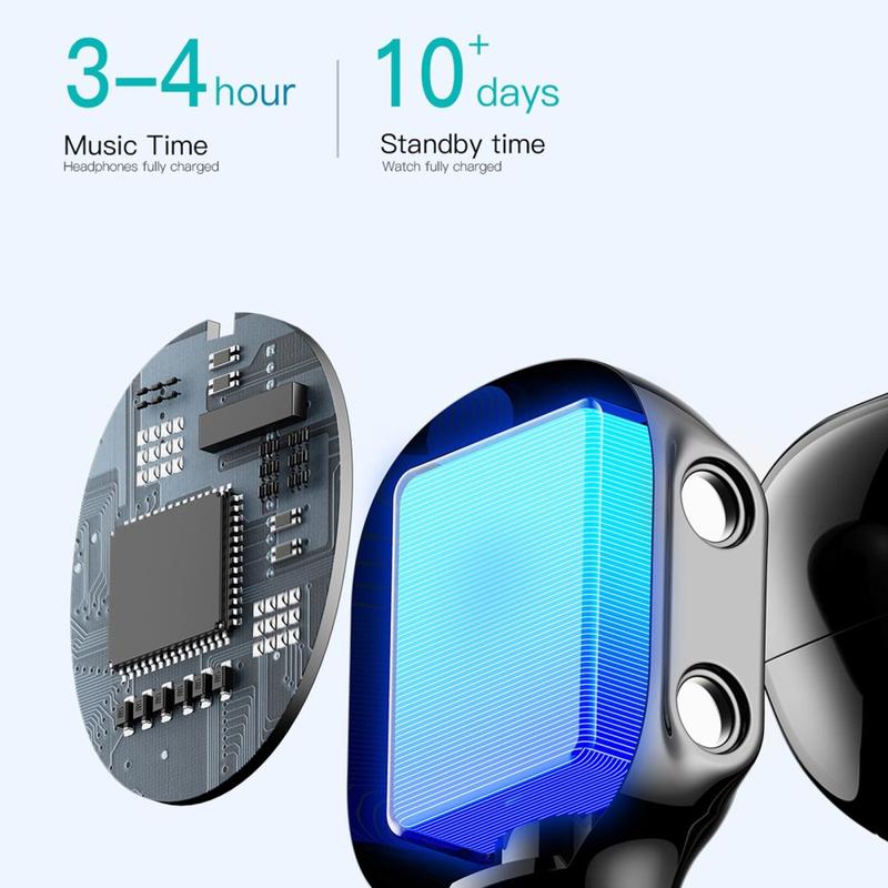 - 2-i-1 smart design - Kombinerer et smartwatch og aftagelige Bluetooth-ørepropper, der giver dig fuld kontrol over din fitness, opkald og musik fra én enhed.