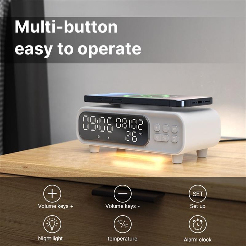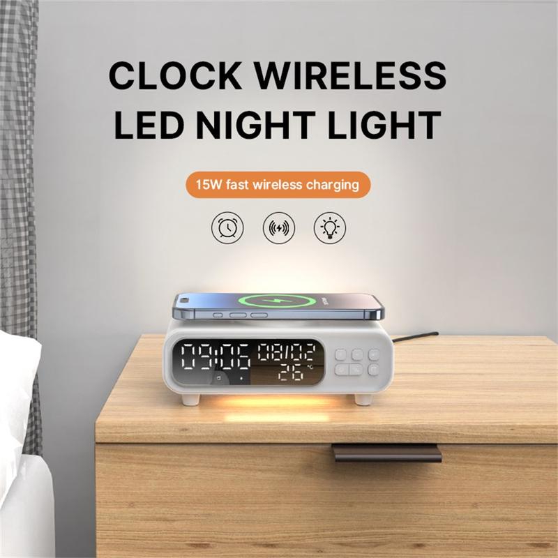 - 5-i-1 multifunktionelt design - Kombinerer en 15W trådløs oplader, vækkeur, kalender, temperaturvisning og natlys.