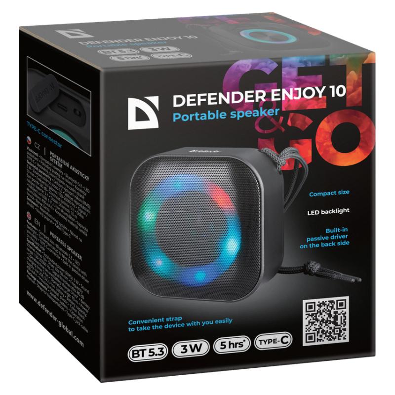 Defender Enjoy 10 bærbar Bluetooth 5.3-højttaler - rejsevenlig med LED-baggrundsbelysning og passiv driver