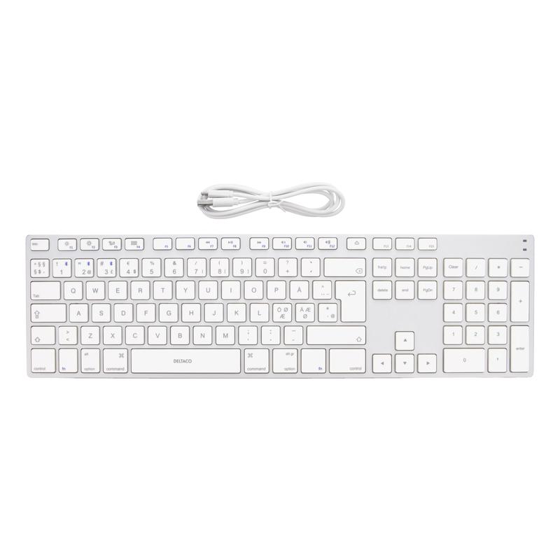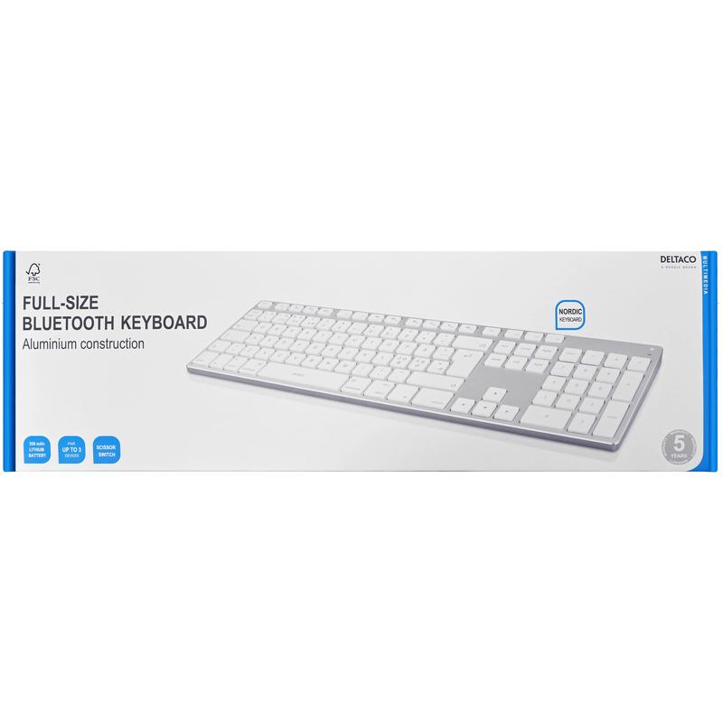 Deltaco TB-402 Bluetooth-tastatur i aluminium i fuld størrelse - nordisk