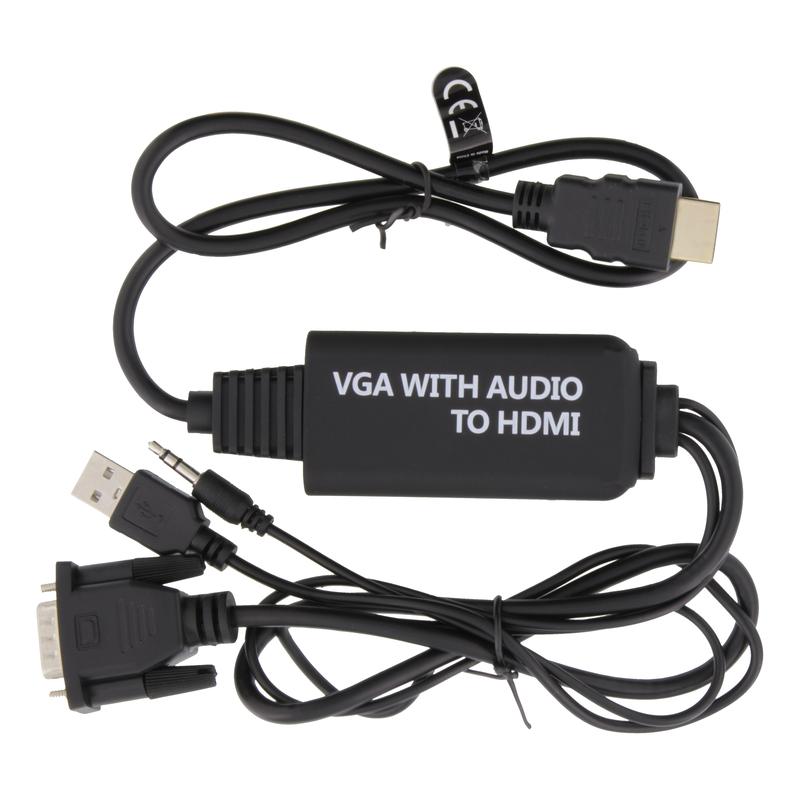 - Tilslutninger: VGA han + 3,5 mm han til HDMI han