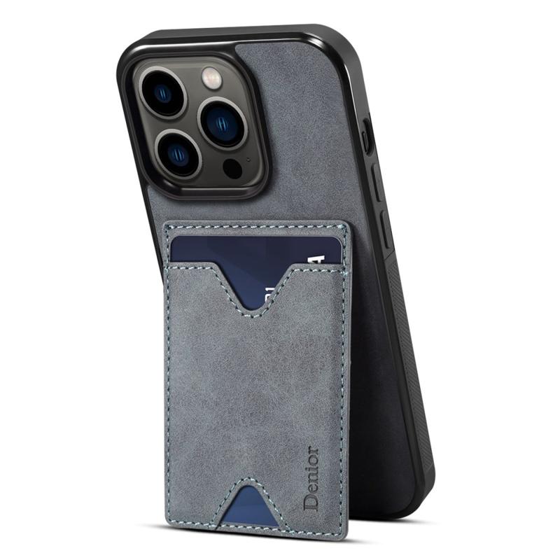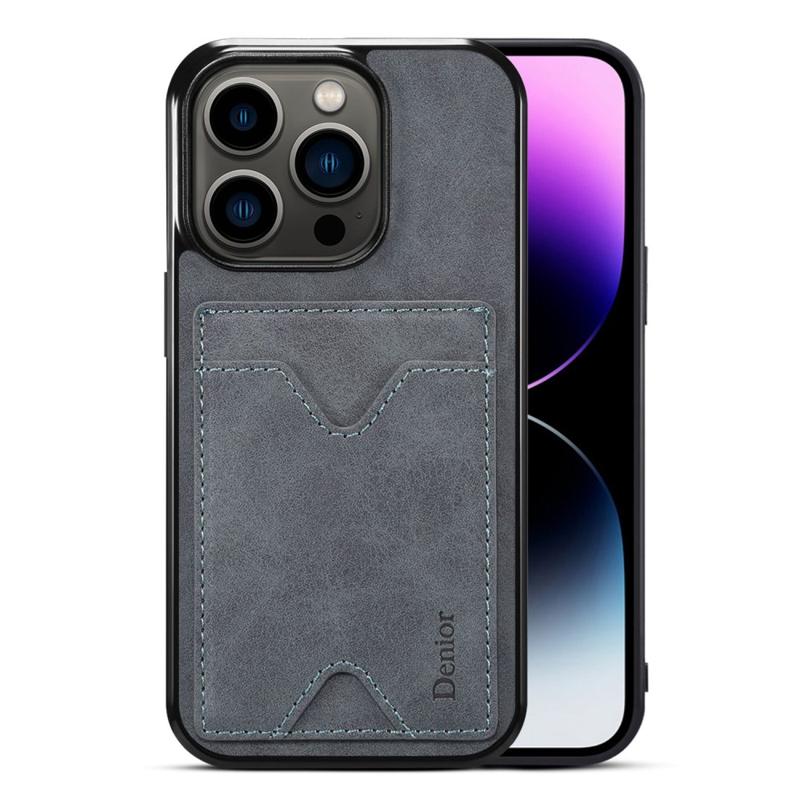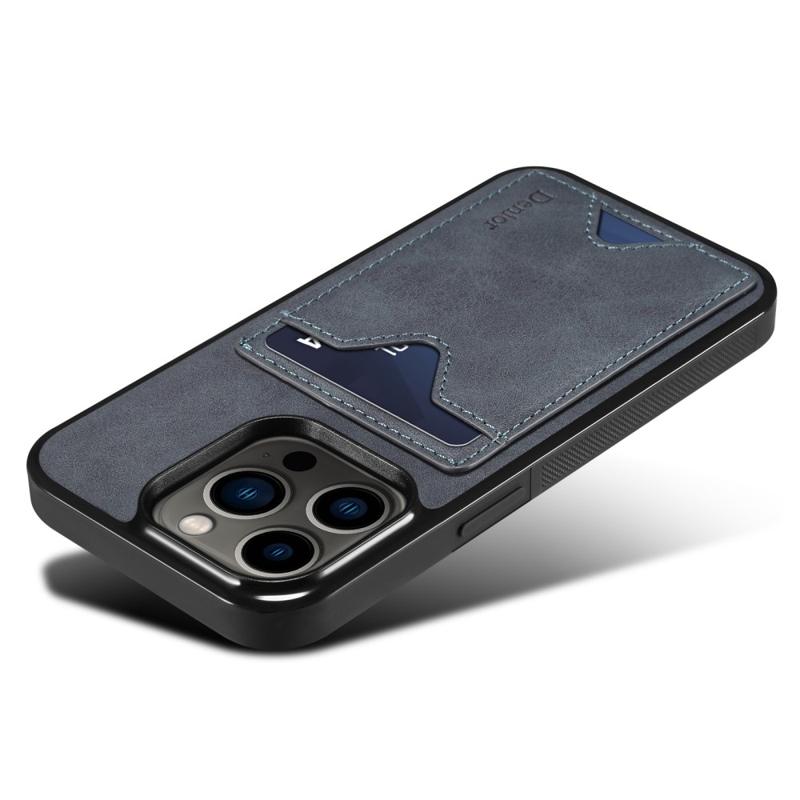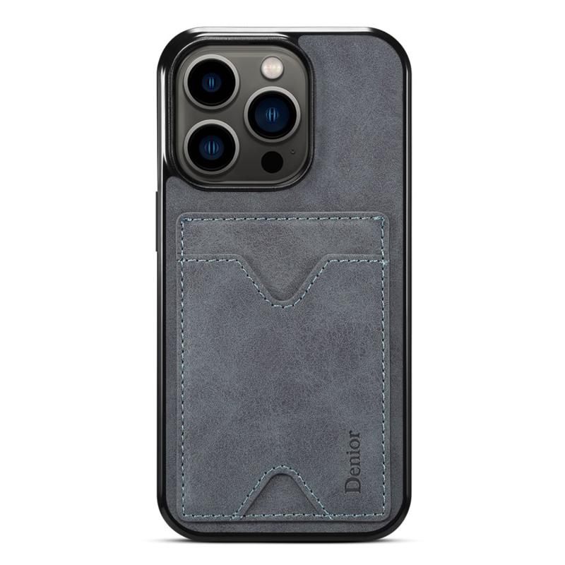DENIOR Til iPhone 14 Pro Kortholder Telefon Cover Anti-ridse PU læderbelagt TPU Kickstand Case