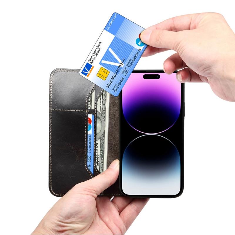 Denior Vintage Series iPhone 14 Pro Læderpung - Sort