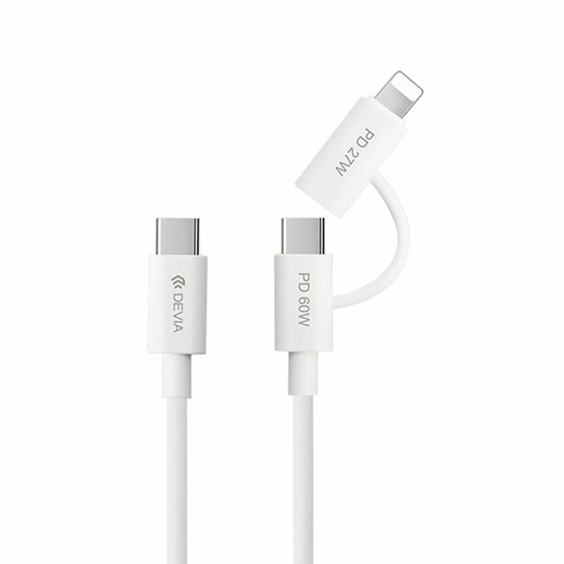 Devia EC404 Smart 2-i-1 hurtigopladnings- og datakabel - USB-C til USB-C PD 60 W og Lightning 27 W - 1.2m, 480 Mbps