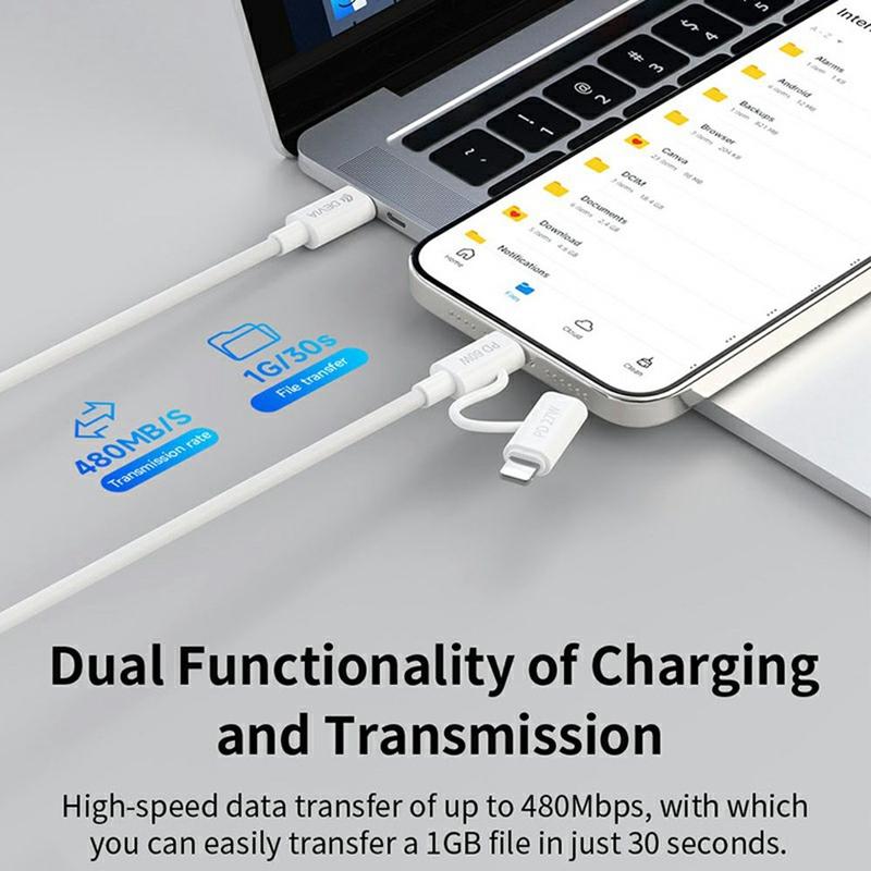 Mød den komplette kabelløsning til moderne enheder: Devia EC404 Smart Series 2-i-1-kablet kombinerer USB-C til USB-C Power Delivery (op til 60 W) og en Lightning/IP-opladningsmulighed (op til 27 W) i et enkelt, overskueligt kabel. Uanset om du oplader en bærbar computer ved dit skrivebord, oplader en telefon i sofaen eller pakker let til rejsen, holder dette kabel din opsætning enkel - uden at gå på kompromis med hastighed, stabilitet eller holdbarhed. Den opgraderede TPE-kappe er fleksibel, modstandsdygtig over for sammenfiltring og bygget til at håndtere daglig bøjning, mens den tykke 20AWG fortinnede kobberkerne hjælper med at reducere energitab for effektiv, køligere hurtigopladning.