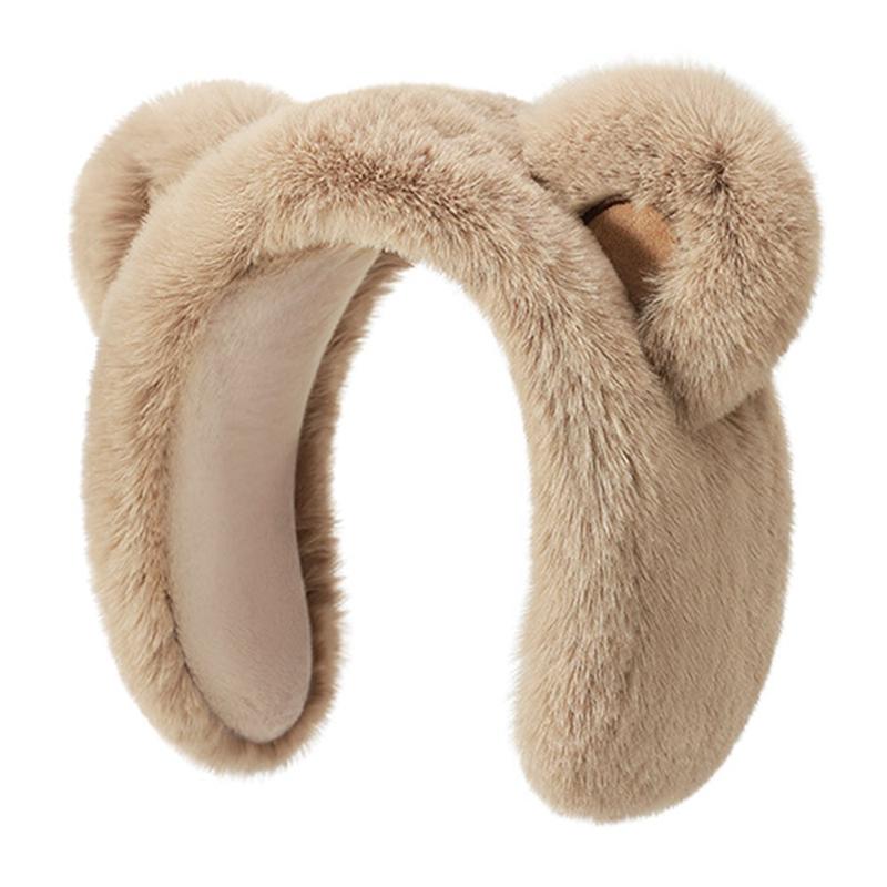 DEZ45 Sødt plysbjørneøre vinter pandebånd / høreværn - Beige