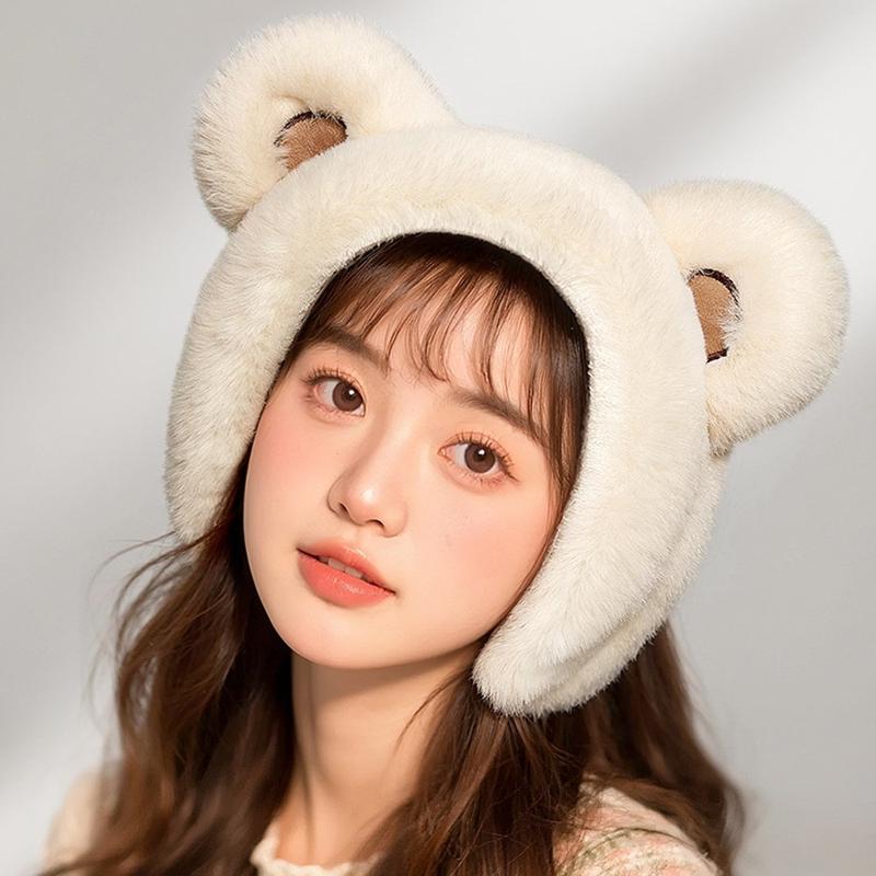 DEZ45 Sødt plysbjørneøre vinter pandebånd / høreværn - Beige