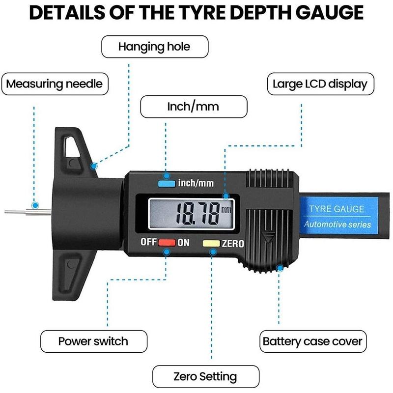 Sørg for optimal dækydelse og sikkerhed med den digitale mønsterdybdemåler, der er designet til præcis måling af mønsterdybde, registrering af slid på bremseklodser og vedligeholdelse af dæk. Med et stort LCD-display, konvertering til metriske mål/tommer og nulstillingsfunktion giver dette værktøj meget nøjagtige målinger til biler, motorcykler, lastbiler og SUV'er. Det kompakte og holdbare design gør det til en uundværlig gadget for mekanikere, bilentusiaster og almindelige bilister.