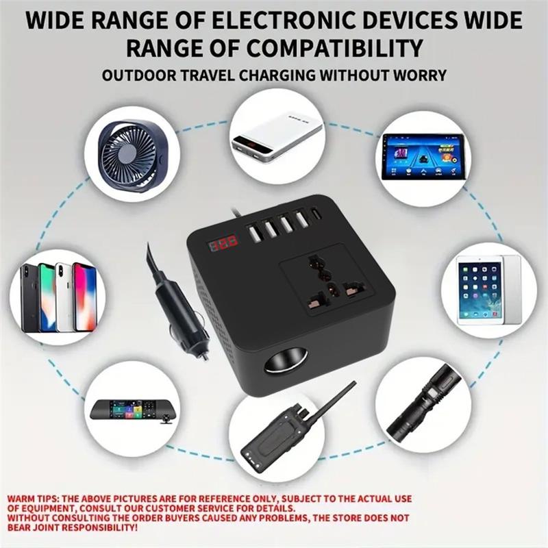 Perfekt til bilture, campister, lastbilchauffører og rejsende, der har brug for pålidelig strøm til flere enheder - fra telefoner til små apparater - hvor som helst og når som helst.