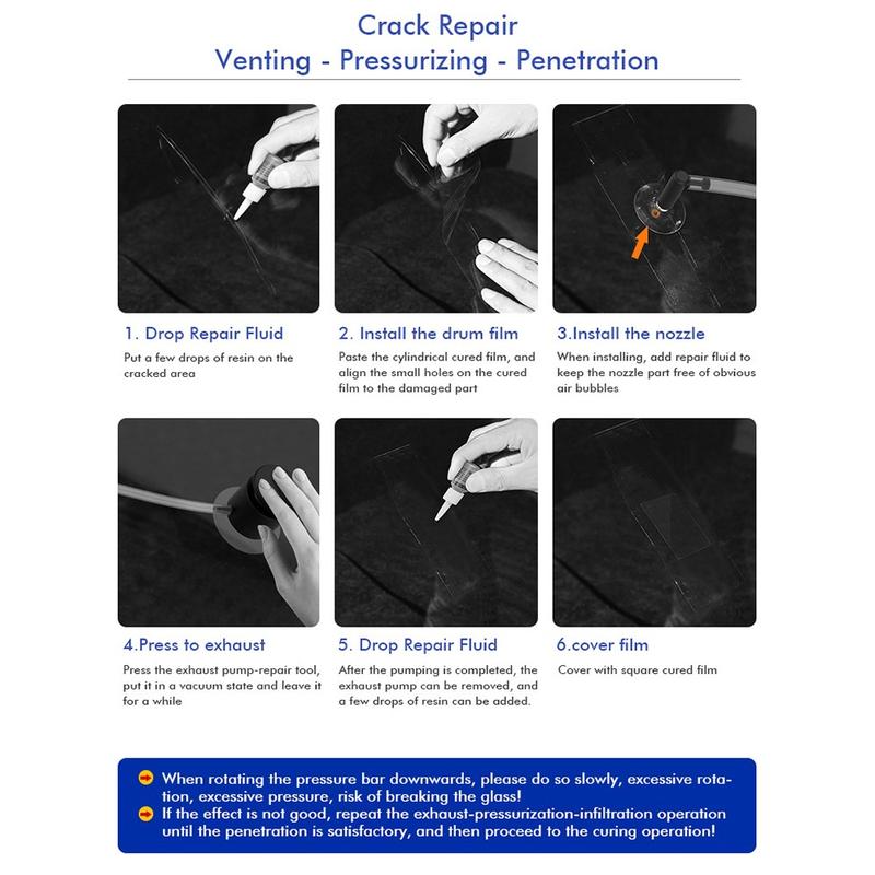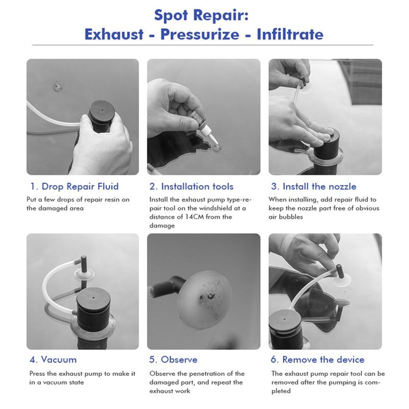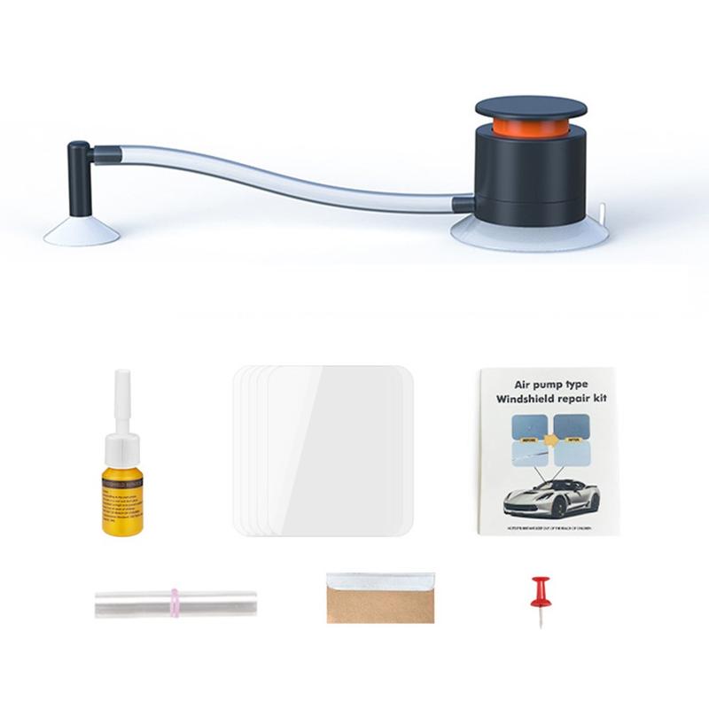 DIY-reparationssæt til revner i bilruder med luftpumpe og vakuumværktøj - UV-harpiks-reparationssæt til skår og revner (bærbart, uden strøm)