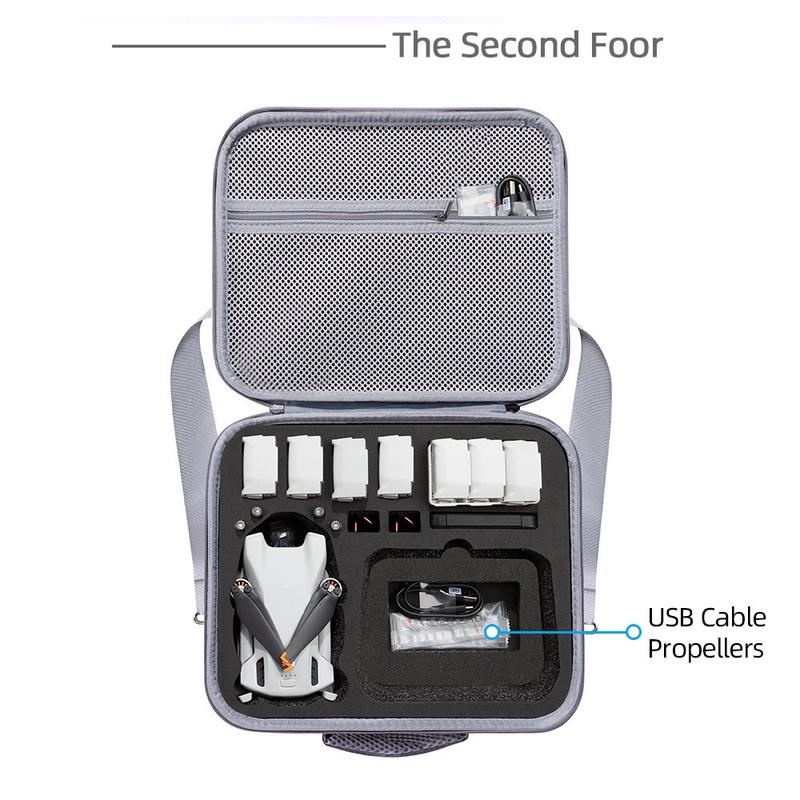 - Kompakt, men rummelig: Trods sin kompakte størrelse har kufferten rigelig opbevaringskapacitet, så din drone og dit tilbehør kan holdes organiseret og let tilgængeligt.