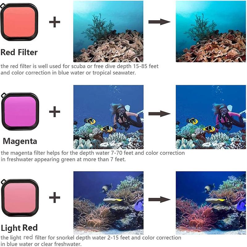 - Undervandsfiltre hjælper med at gendanne farver, der absorberes i dybden, hvilket forbedrer det naturlige udseende af optagelserne