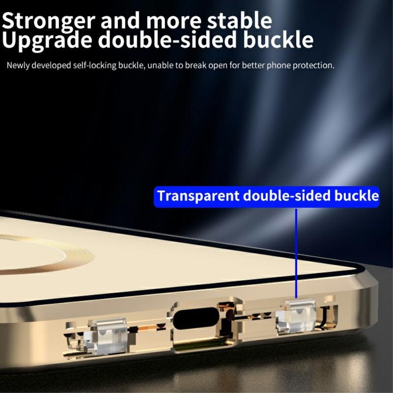 Kompatibel med MagSafe-etui til iPhone 15 Pro magnetisk metalramme + dobbeltsidet telefoncover i hærdet glas med spændelås