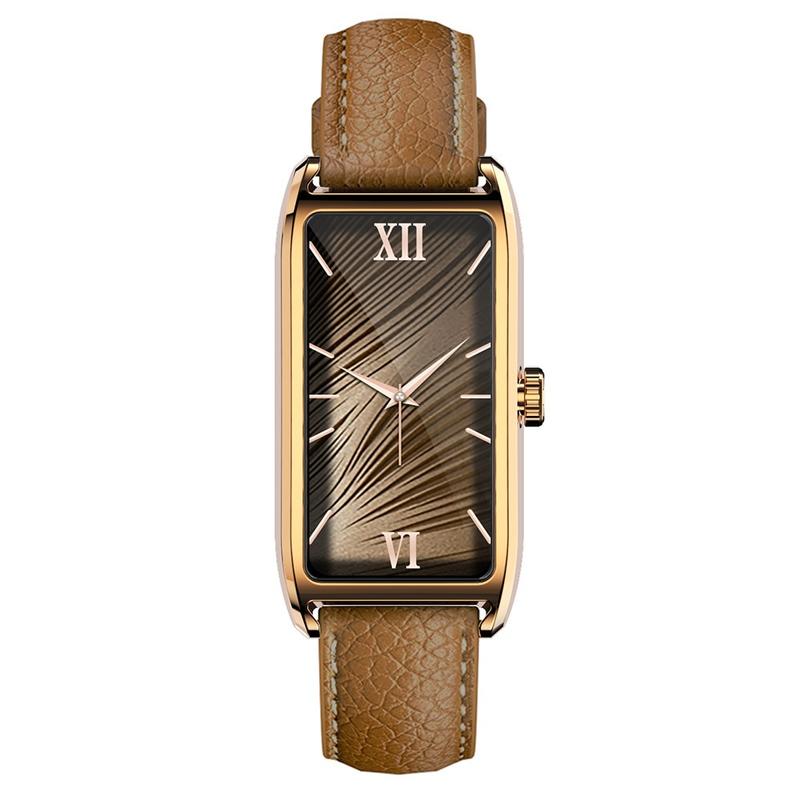 Dora T er inspireret af moderne urmageri og har en firkantet urkasse med glatte, afrundede kanter og fine vandrette linjer, der udstråler mekanisk præcision og raffinement. Dens superfiberlæderrem med spænde i rustfrit stål sikrer en blød, behagelig pasform på ethvert håndled.