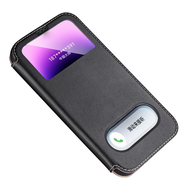 Lavet af førsteklasses ægte kohudslæder med udsøgt håndværk, giver etuiet et elegant look, god håndfølelse og lang holdbarhed. Den havde et dobbeltvindue til at se information/besvare eller afvise telefonopkald. Et foldbart stativ understøtter en behagelig visning, hvilket helt sikkert gør video mere behageligt.