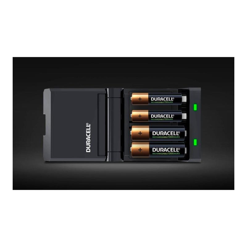- Indeholder 2 Duracell R6 AA 1300mAh og 2 Duracell R03 AAA 750mAh genopladelige batterier